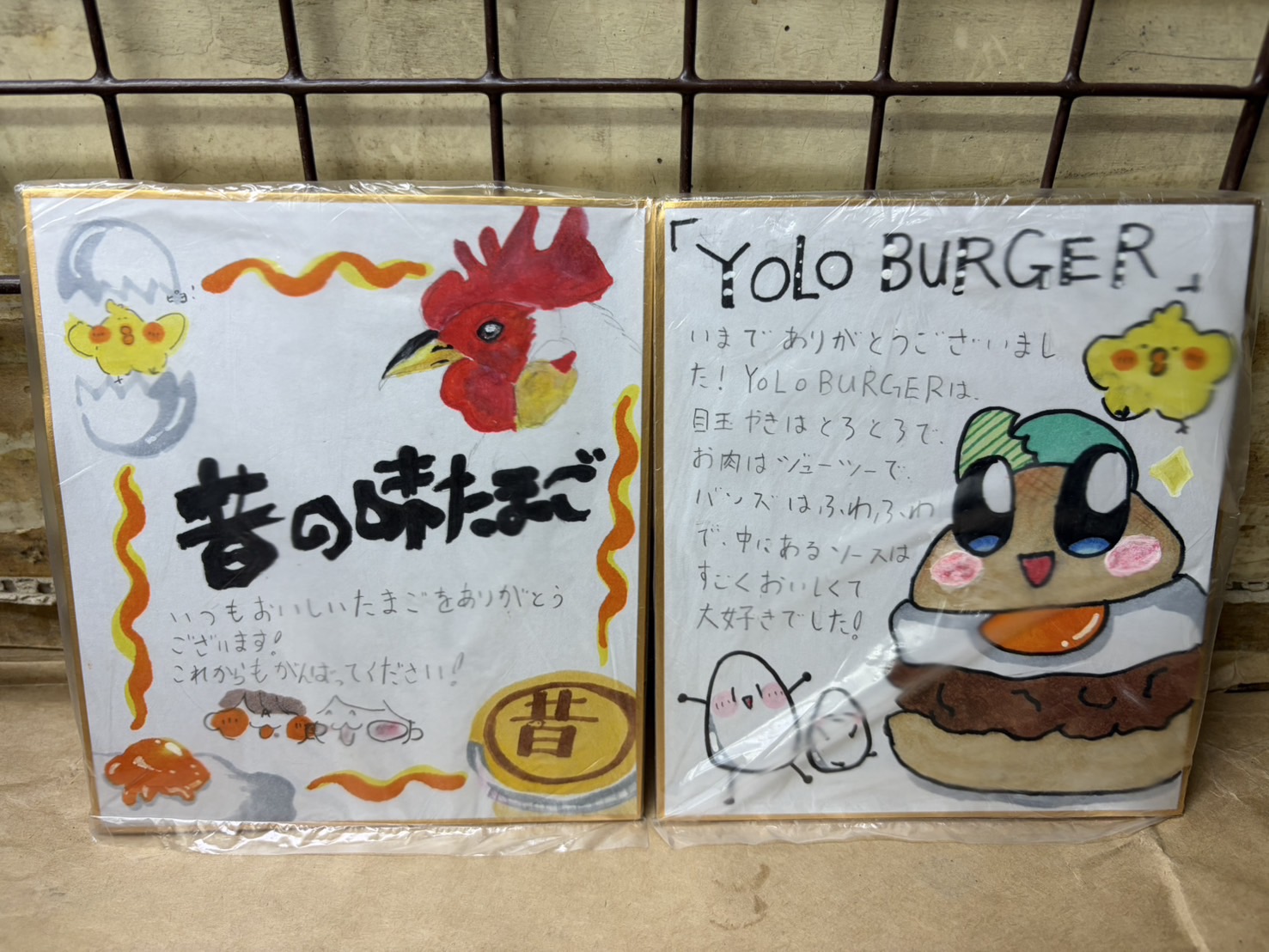 可愛い色紙を描いてきてくれた子供たちがいました。YOLO BURGERの歌も作って歌ってくれた小学校の生徒さんでした。嬉しくて泣ける(ノД`)・゜・。
