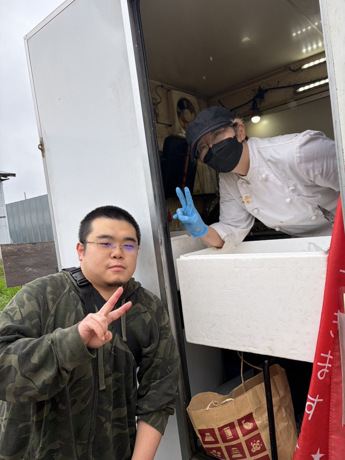 台風来た?!っていうくらいの春の雨嵐だった最終日…。キッチンカーの窓口をオープンすると、キッチンカー内の鉄板の火が消えてしまうほどの風と雨。それでも最終日に来てくれるお客さんがいる!絶対営業する!!ということで、窓口は開けずに閉めて焼く感じで営業スタートしました。